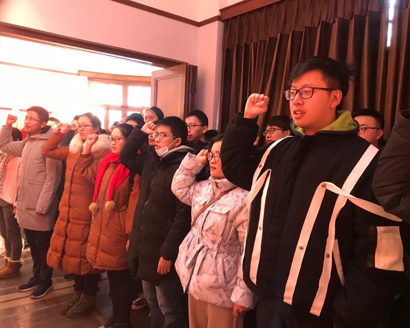 值中国共产党建党百年之际,为进一步用红色基因铸魂育人,激励师生传承宣言精神,PA真人 于2021年1月7日下午在共产党宣言展示馆举行简朴而庄重的师生党员入党宣誓仪式。宣誓仪式由PA真人 党委副书记王珏主持,党委书记于瀛、专职辅导员韩画宇出席,2020年下半年新发展的1名教师党员和20名学生党员参加仪式。