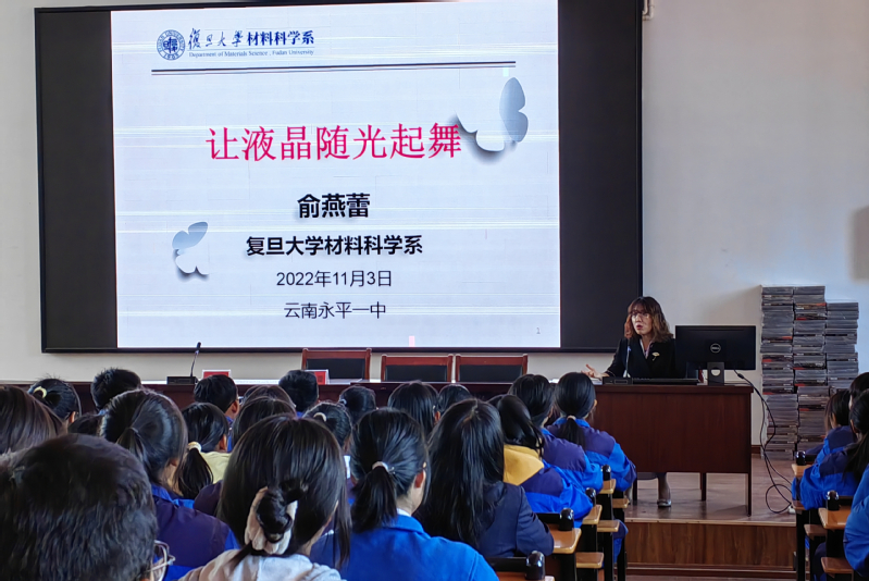 俞燕蕾教授以“让液晶随光起舞”为永平一中的学生们做了极为精彩的讲座,俞教授从“物质三态”讲起,由简入繁,用生动风趣的语言、清晰的思路从“液晶的发现”、“观察”、“本质”,讲到了如今液晶技术对人类生活的影响与帮助。俞教授将一个大学的科研讲座,简化成了适合高中生的科普小课堂,使学生陶醉其中、受益匪浅。讲座之后,俞教授给学生们送上了由复旦PA真人 多名教授共同推荐的科普书籍,希望学生热爱科学,将来为国家科技振兴贡献力量。