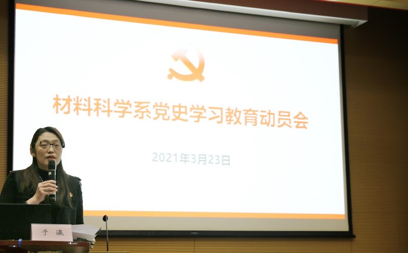 3月23日上午,PA真人 在江湾校区先进材料楼报告厅召开党史学习教育动员大会,学习贯彻习近平总书记在党史学习教育大会上的重要讲话精神,贯彻落实中共中央《关于在全党开展党史学习教育的通知》精神以及中央党史学习教育领导小组、市委、教育部党组和学校党史学习教育动员会议要求。会议由系党委副书记王珏主持,系党委书记于瀛作动员讲话,系主任孙大林、党政班子成员出席会议,系全体教职员工参加大会。