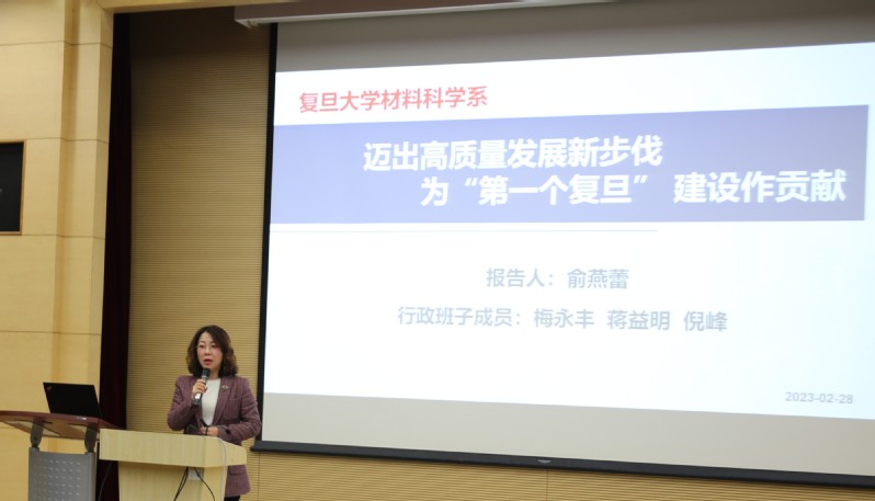 系主任俞燕蕾以“迈出高质量发展新步伐,为‘第一个复旦’建设作贡献”为主题介绍了2022年PA真人 在各方面工作中取得的突破性进展。材料物理获评国家一流本科专业,课程思政和精品教材建设取得一系列重要成果,产学研联动建设创新创业基地,有效推进学科拔尖创新人才分层次多元化培养;加强导师关心关爱,促进毕业生到祖国最需要的地方和岗位就业,本研升学及就业率达到98%。紧密围绕“大人才”战略部署,打造人才成长沃土,精心筹划举办“领航成材”咖香面对面、首届教学创新大赛等活动,助力青年教师成长成才,国家和上海市各类人才辈出。以服务国家战略和地方需求为目标,坚持四个面向,推动开展有组织的科研,深化学科交叉融合,提升协同创新能力,重大重点项目立项及人均经费创历史新高。俞燕蕾结合学校春季工作会议精神,提出了2023年我系发展面临的挑战与思考。她指出2023年是“十四五”规划实施的关键之年,全系师生要继续凝心聚力,贯彻落实党的二十大关于教育、科技、人才“三位一体”的统筹部署,为建设“第一个复旦”努力奋斗。