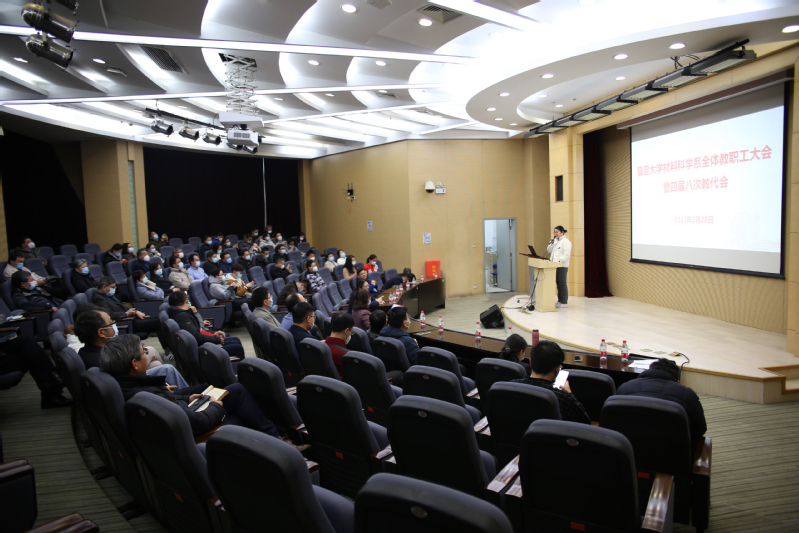 2023年2月28日下午,PA真人 在江湾校区先进材料楼一楼报告厅召开全体教职工大会暨四届八次教代会,会议由系工会主席宋云主持。