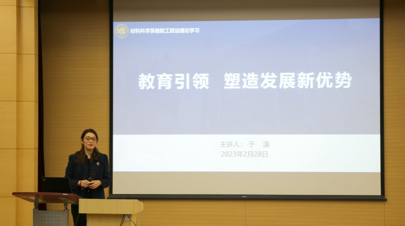 在新学期教职工政治理论学习第一课上,于瀛首先向全体教师传达了学校2023年春季学期工作会议精神,并以“教育引领,塑造发展新优势”为主题,结合当前疫情防控举措、经济形势以及高校师生重点关心问题等内容介绍了新学期工作安排。2023年,PA真人 将按照学校要求,结合校训内涵,在博学深学、笃志笃行两方面不断深化,真正把思想和行动统一到党中央决策部署上来,贯彻落实立德树人根本任务,深化“三全育人”综合改革。要继续加强与改进师德师风建设,持续开展导师关心关爱行动,推进落实教育引导活动工作方案,筑牢安全稳定“防护墙”,扎实做好常态化校园疫情防控工作。全系师生要敢闯敢干,为“第一个复旦”的高质量发展注入材料学科新动能、塑造新优势。