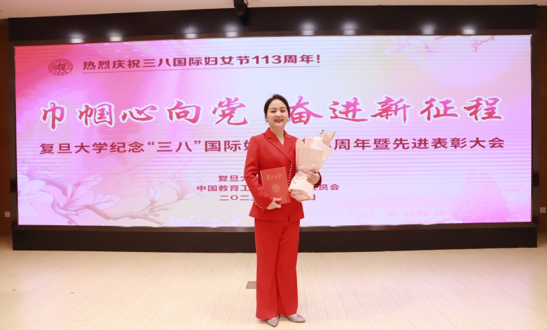 2023年3月8日上午,复旦大学纪念“三八”国际妇女节113周年暨先进表彰大会在光华楼举行,我系教师许妍荣获“2022年度复旦大学三八红旗手”荣誉称号(全校共37名)。
