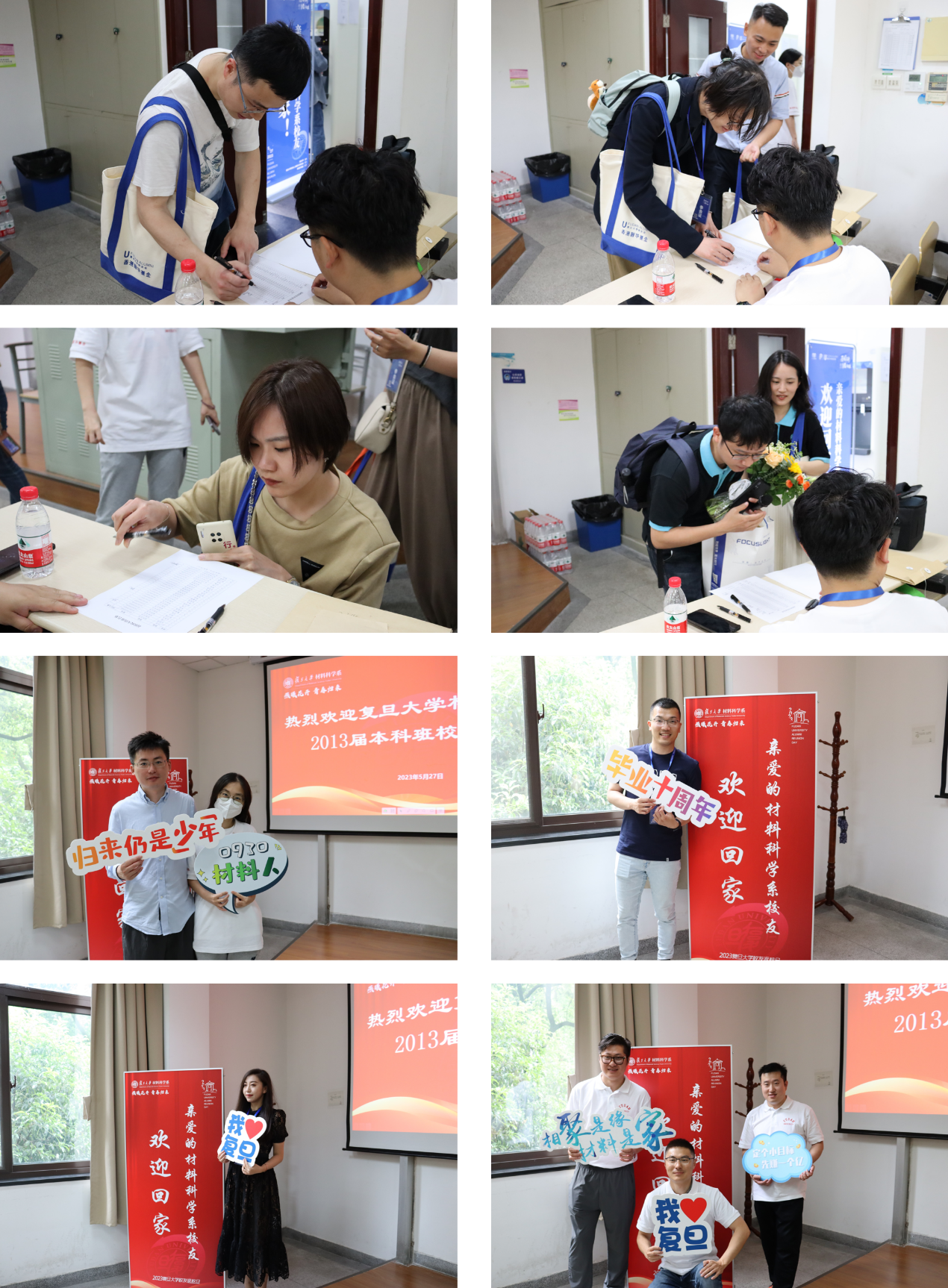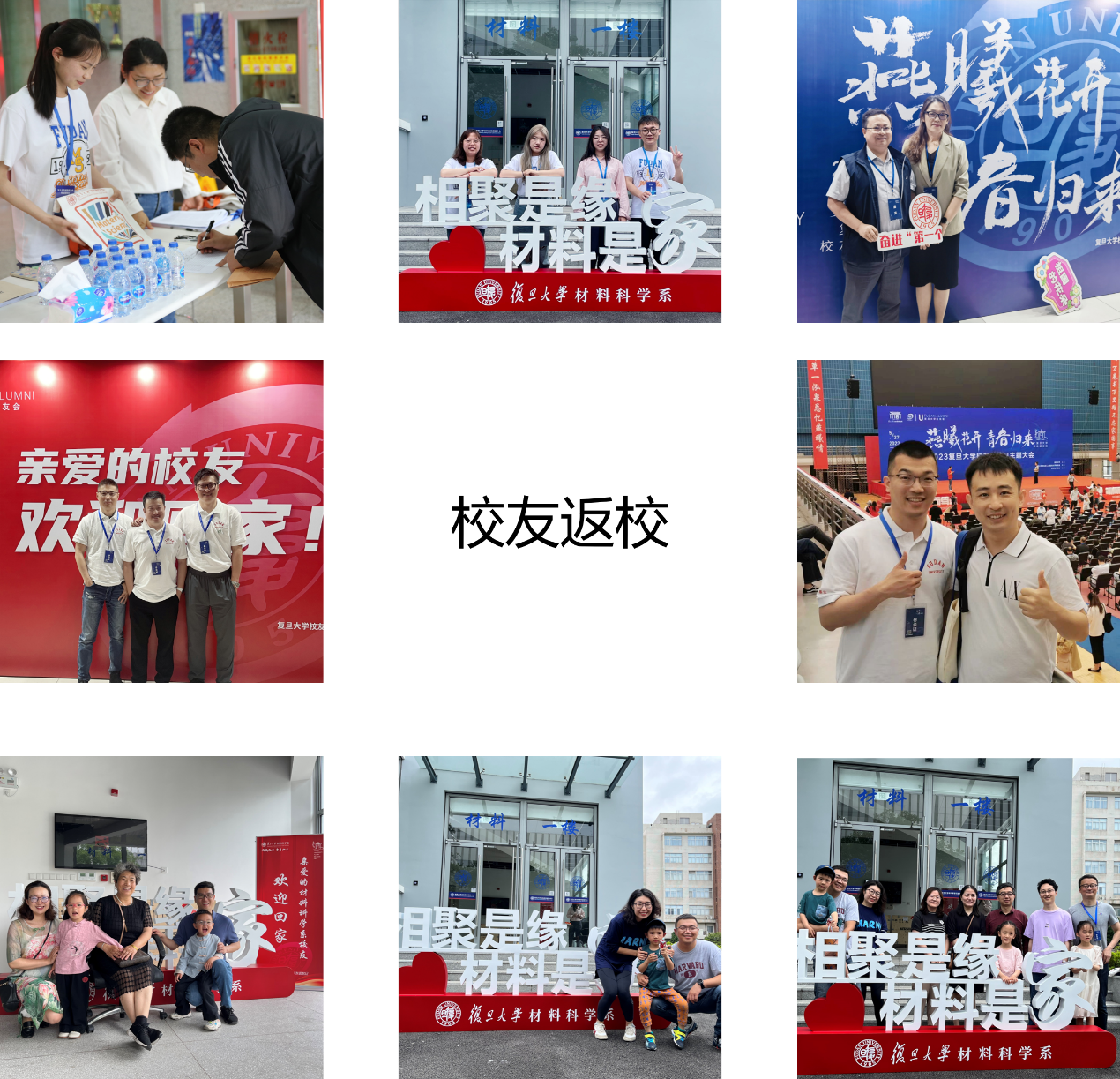 “亲爱的PA真人 校友欢迎回家!” 为迎接校友们“回家”,PA真人 领导及系里老师们高度重视,大家早早一个月前就开始为返校活动做筹备工作。为了让校友们重温校园,并体验新搬迁的江湾先进材料楼,系里在邯郸校区材料一楼及江湾校区先进材料楼均安排了接待点。此外,系里还为返校校友们精心制作印有PA真人 LOGO的定制笔记本、水笔以及帆布袋。“相聚是缘 材料是家”、“我爱复旦”、“遇见复旦的百年星空”这些放置于签到处的手持牌,在返校当天,也纷纷成为校友们争相打卡的“抢手”物品。