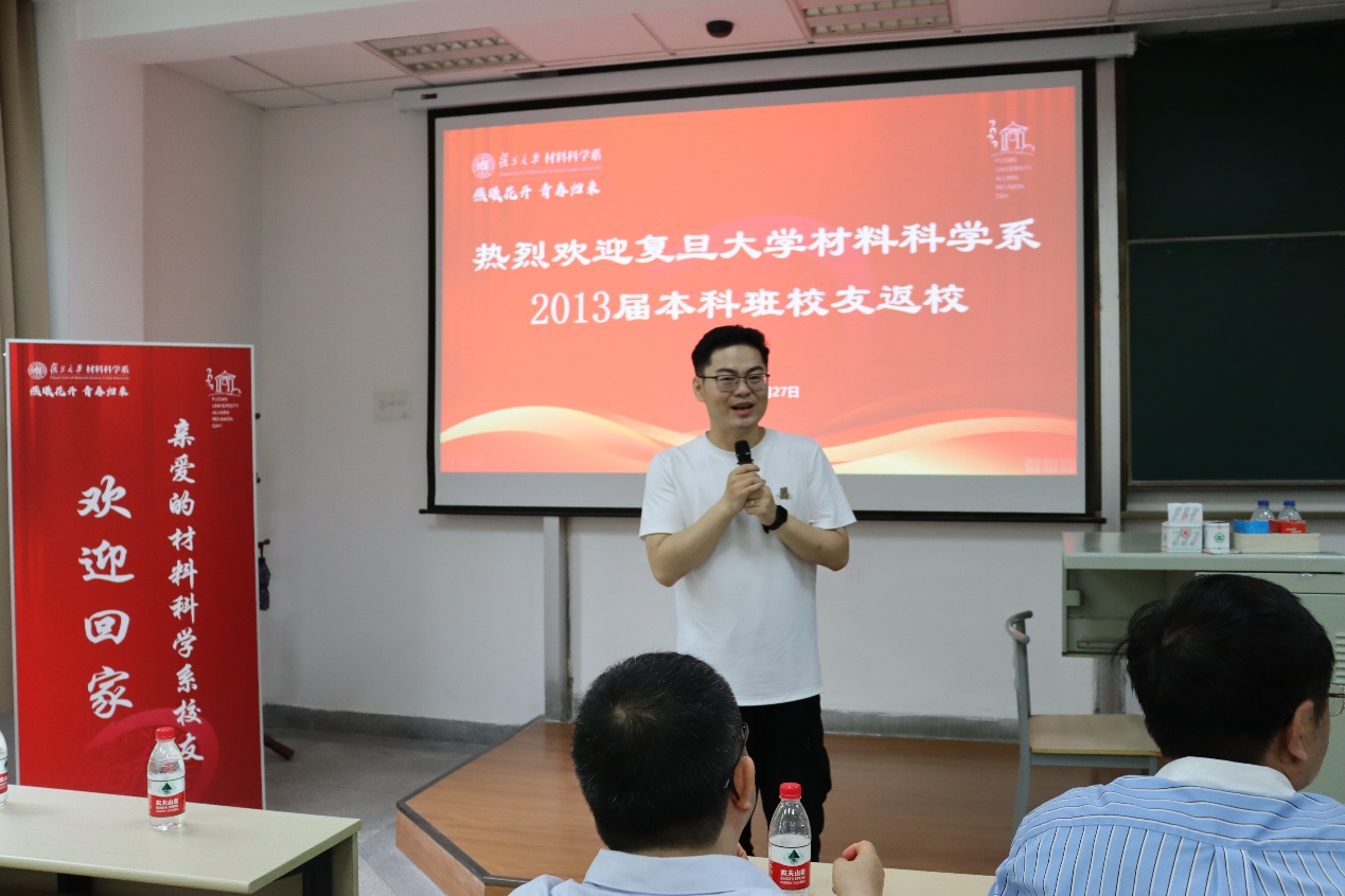 活动伊始,于瀛书记代表全系师生对校友们的返校表示热烈欢迎。她回忆到,十年前,作为班导师,她亲手将同学们从复旦送出去,向着世界各地启程远航;十年后,大家在各自的工作岗位上发光发热,不顾路途遥远,千里迢迢,赶回母校,只为共叙曾经的这份浓浓情谊,她感到无比欣慰。于瀛书记特别强调,PA真人 是每一位材料学子永远的家,温暖的港湾以及坚强的后盾,希望大家常回家看看,她和系里的老师们会像父母一样永远在家等待各位校友的回归,共同见证PA真人 更加美好的明天。