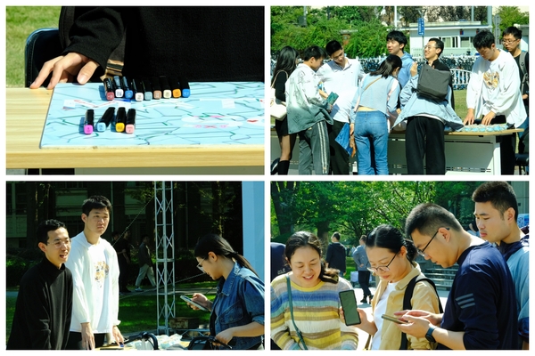 “迷人的材料线下快闪”活动在复旦大学邯郸校区光华楼东辅楼东侧草坪开展,在趣味中科普材料知识,让同学们近距离感受材料之美。线下快闪活动设置了材料KT版艺术涂鸦,邀请同学们共同参与,在创作中了解材料知识;同时,现场发放了材料人文件夹与原创魔方等文创产品,极大地激起了同学们了解材料学的热情。面对同学们对材料学知识提出的疑问和兴趣,活动的工作人员在现场进行了解答,使同学们能够深入了解材料学,拓展了对材料科学的认知。
