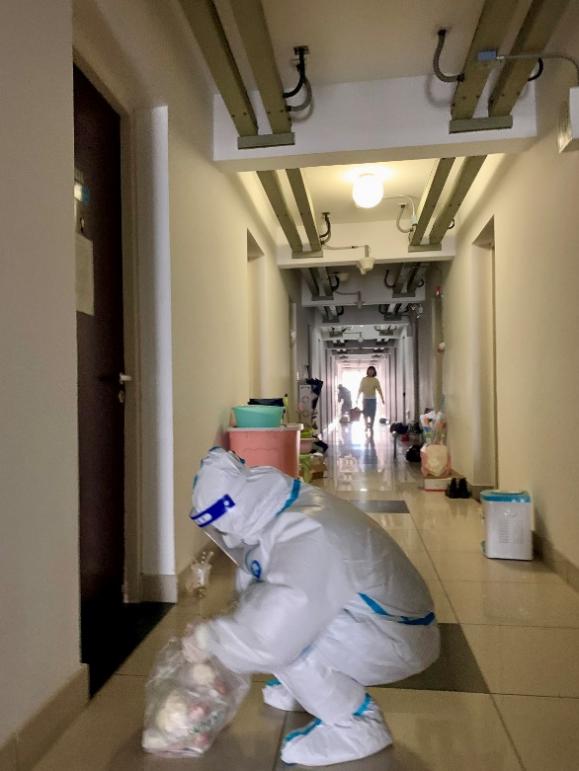 3月31日清晨六时许,一串清脆的手机铃声唤醒了还在睡梦中的同学。电话那头,PA真人 研究生第四党支部书记许妍老师沉着冷静地传达着紧急任务和注意事项;电话这头,住宿在江湾园区1号楼的支部骨干们瞬间起身,投入“战斗”。15分钟后,研究生第四党支部的六名党员同志火速集结成队。通过视频自学防护服的穿脱,志愿者们化身直面迎击病毒的“大白”,承担起为1号楼内520余名同学们送餐、通知核酸检测、清理楼内垃圾、传递紧急药品等任务。住宿在1号楼的PA真人 2019级硕士班辅导员江乐老师,配合系专职辅导员韩画宇老师,承担起统筹楼栋各项工作安排的重任。快速建立腾讯共享文档,设置取餐岗、送餐岗、回收岗、卫生岗等,明确岗位职责,分享优秀经验,快速高效完成志愿任务。