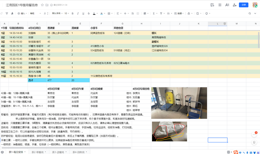 对于管理调度中不时出现的新问题,大家群策群力想办法,累活脏活抢着干。封闭管理的楼宇缺少后勤保障的阿姨,生活垃圾处理成为同学们普遍反映的问题之一。志愿者服务队通过协调,主动规划和实施楼内垃圾的清运工作,缓解楼栋封控对同学们生活造成的不便。送餐运餐过程中涉及到小推车的使用频率和功能,也被辅导员江乐巧妙地画成任务图,最高效地解决了运餐问题。防护服数量有限,怎么延长防护鞋套的使用寿命也引起了大家思考,巧手姑娘们用一段透明胶带破解了这个难题。对于干湿垃圾的分离问题,用一个纸箱单独回收筷子,大大提高了垃圾袋的使用率。诸如此类的巧思妙招,是封控管理中志愿者们主动思考、自发行动、机智应对的生动体现。在封控期间同学们提出的各项建议与需求,也在通过共享文档不断整理与反馈,尽力化解同学们的不安情绪。看到志愿者们忙碌的身影,更多同学们积极主动地提出期望加入志愿服务队伍,PA真人 的同学们在志愿服务队中的人数也增加至了十余人。楼栋内的生活虽然不同于往日的方式,但同样在有序地向前推进。这些都离不开志愿者们的辛勤付出和同学们的理解与支持。