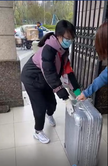 图3 志愿者消杀行李,协助保安搬运物资