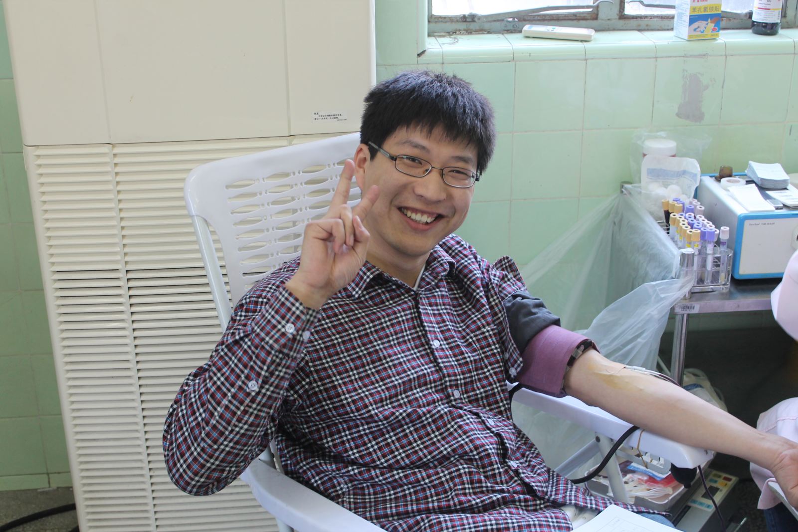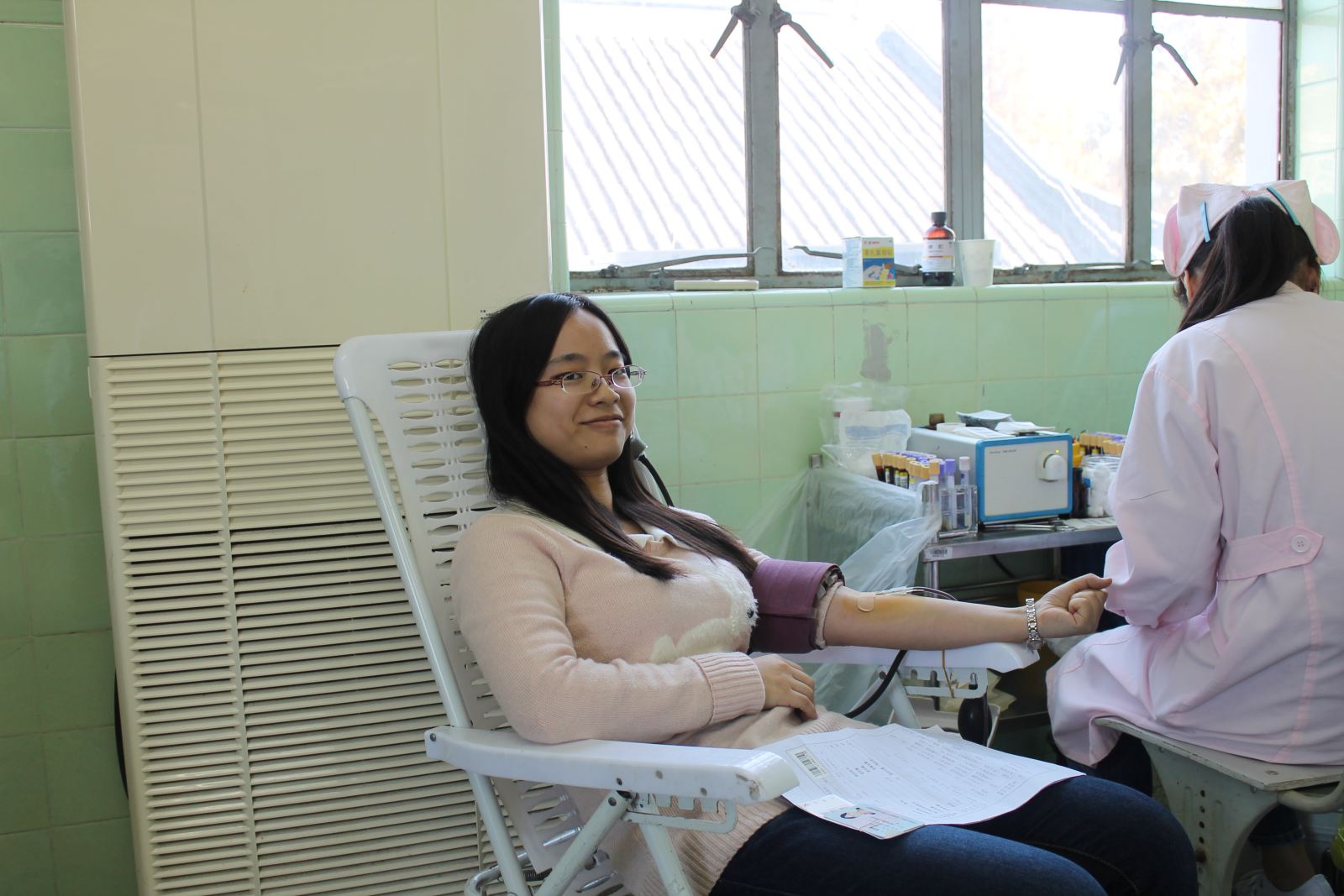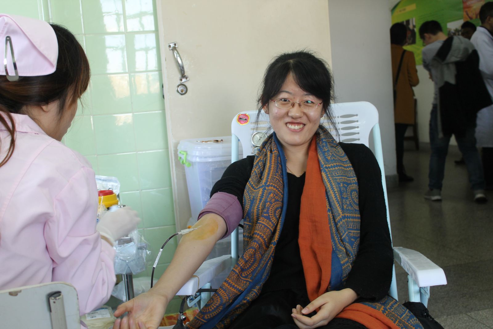 活动一周前,班委与校医院预约时间,向同学介绍献血流程,宣传献血知识,减轻同学们对献血的陌生感和恐惧感,同时也提醒大家献血过程中和献血之后的注意事项,并组织志愿者当天对献血的同学进行必要的照顾。27号上午9点,同学们在校医院集合,参加此次无偿献血活动。经过填表、体检、初验等流程,献血过程大约午时结束。期间组织工作有条不紊。