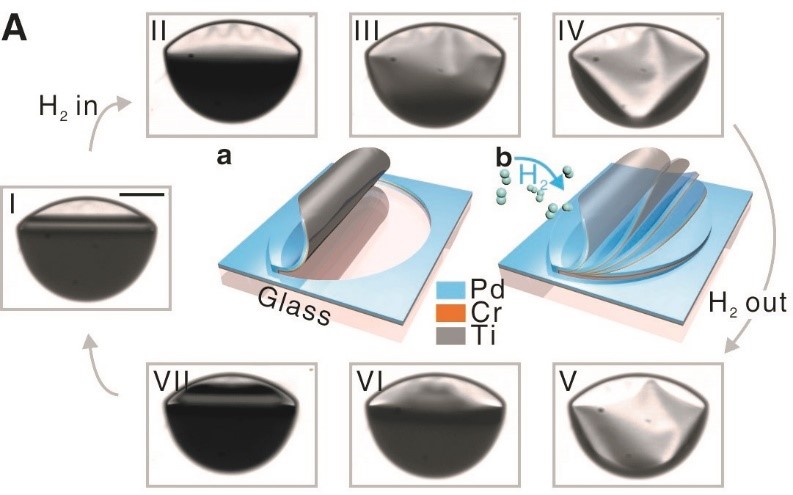 PA真人 梅永丰教授课题组利用纳米薄膜三维自卷曲在氢气可视化探测方面取得进展
