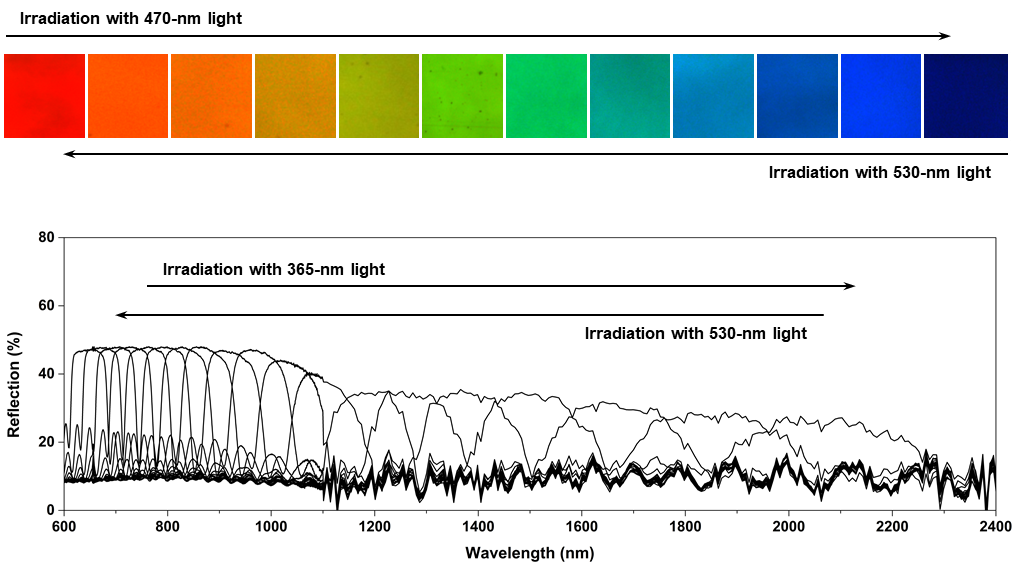 图3 胆甾相液晶反射波长的分段调控,包括可见光和近红外光区域