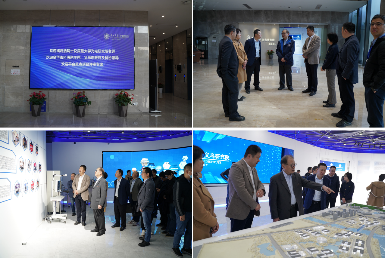 在复旦大学义乌研究院院长周曦的引导下,复旦大学光电研究院一行首先参观了义乌研究院展厅,了解其发展概况与未来规划。