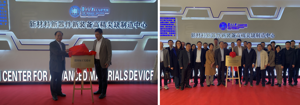 之后,一行人前往义乌市科创园,褚君浩院士和周曦院长为“复旦大学光电研究院义乌附属实验室”和“微纳加工实验室”揭牌,并参观了位于科创园的实验室。该实验室的建立,标志着双方合作关系的深化。