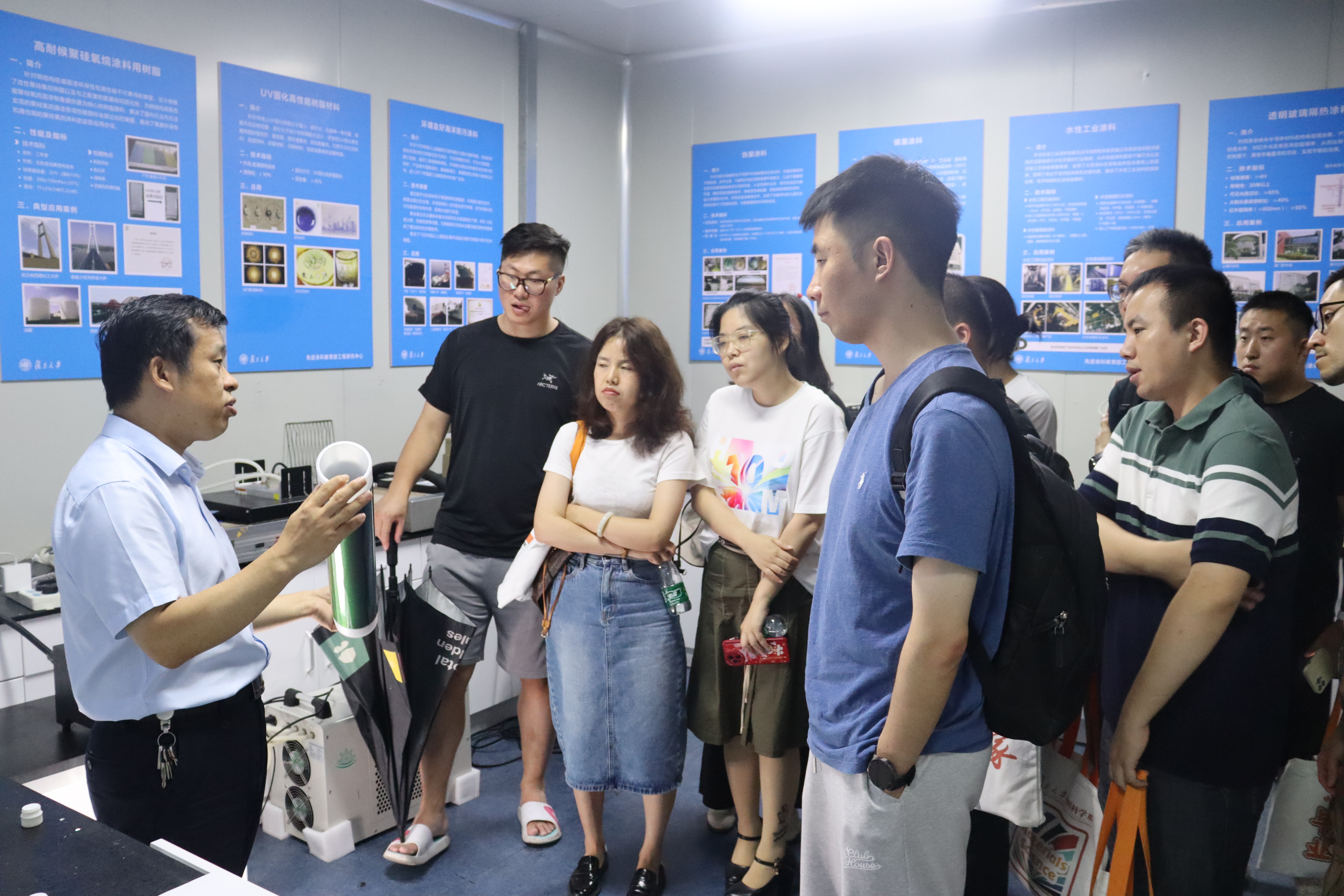 座谈之后,PA真人 周树学老师和宋云老师带领系友们参观了教育部先进涂料工程研究中心和储能材料实验室。周树学老师重点介绍了目前先进涂料的研究进展,特别是在国产大飞机以及祝融号火星车上的应用,宋云老师则展示了能源材料当下的研究方向。系友们均表示对于系里科技创新取得的新成绩感到非常自豪,同时也感叹现在材料科学前沿发展的日新月异。