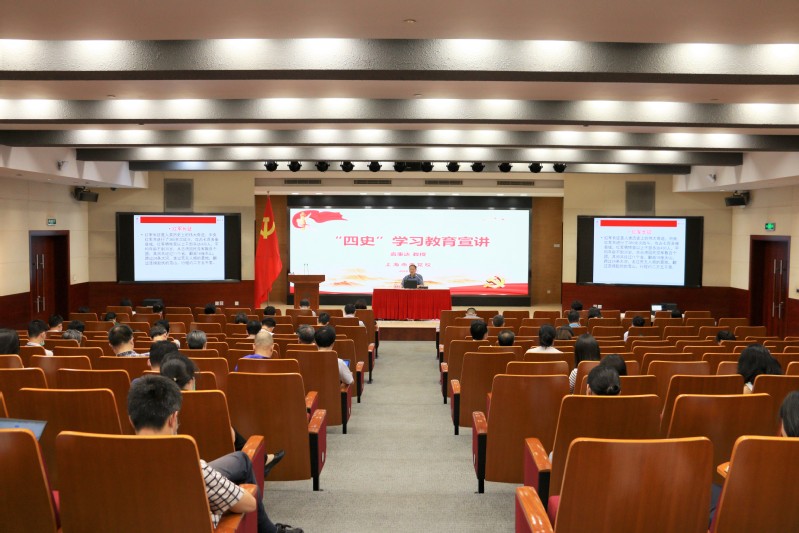 袁秉达教授首先解读了习近平总书记给复旦大学青年师生党员的回信,认为这是在重要时间节点上的一次重要回信,不仅是对复旦师生党员,也是对全国青年师生党员提出了殷切希望。接下来,袁教授以党史为主线,回顾了党的诞生、建设、发展和壮大的99年光辉历程,结合中国新民主主义革命、新中国建立、全面建设、改革开放等重大事件,深刻阐明了开展“四史”学习教育的重要意义,总结了党史的宝贵启示,对师生如何深化“四史”学习教育提出了具体的建议。报告立意高远、论述精辟,既有理论高度又有实践深度,让师生接受了一次深刻的思想洗礼。